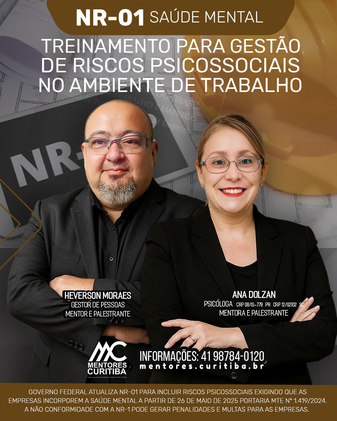 Em outras palavras, a NR-1 agora inclui a saúde mental como um aspecto crucial da segurança e saúde ocupacional, e as empresas precisam implementar medidas para garantir um ambiente de trabalho psicologicamente saudável.